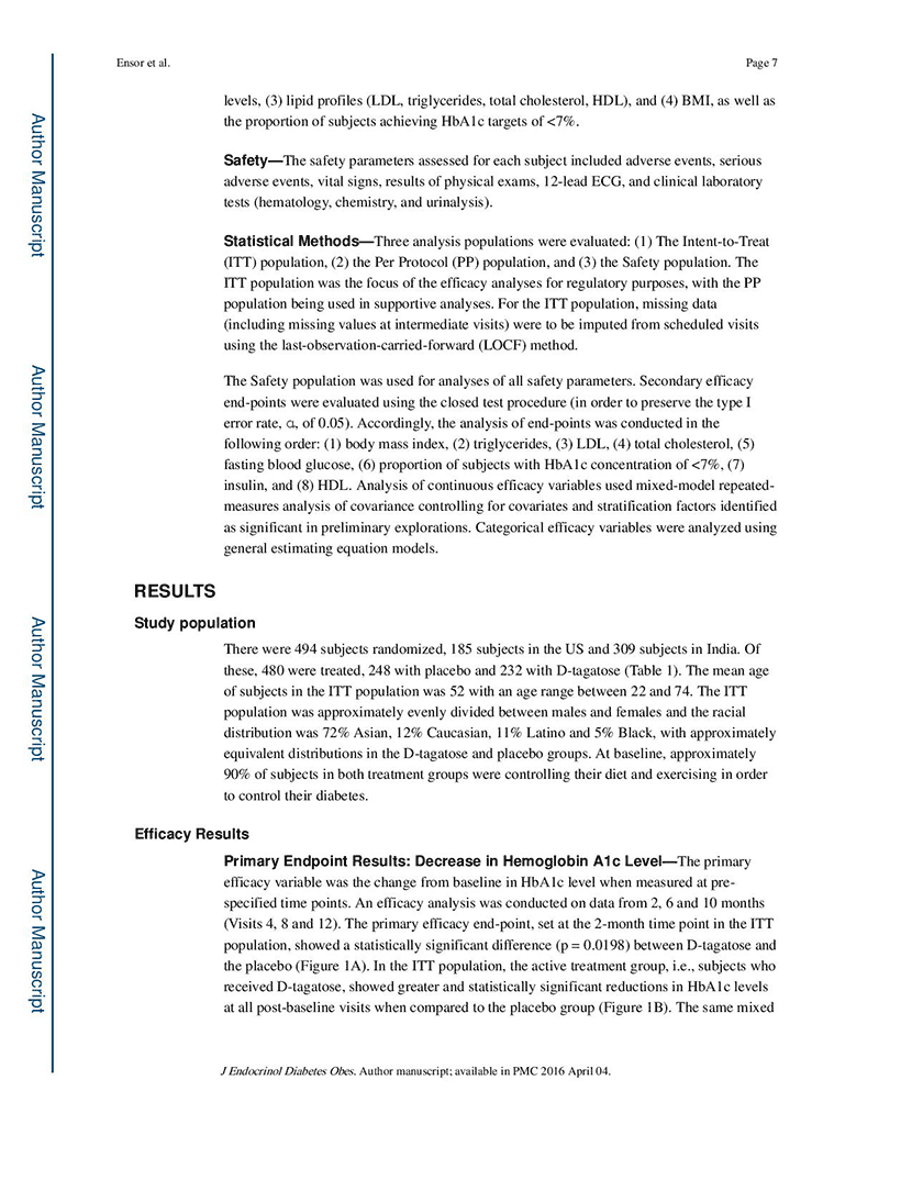 Ensor, Mark, et al. Safety and Efficacy of D-Tagatose in Glycemic Control.